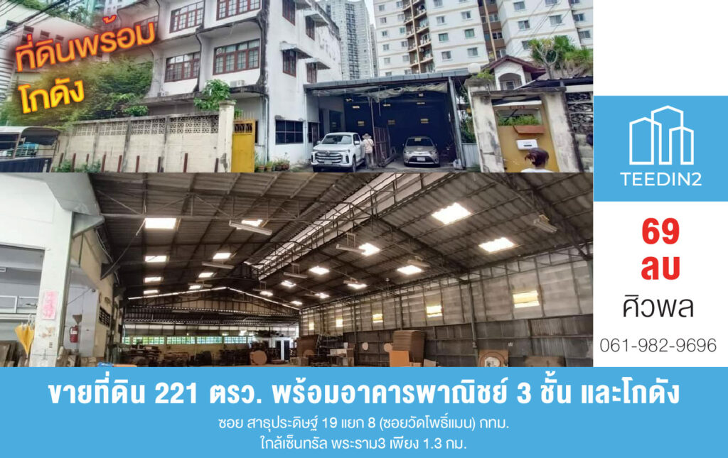 ขายด่วนที่ดิน 221 ตรว. พร้อมอาคารพาณิชย์ 3 ชั้น และโกดัง ซอย สาธุประดิษฐ์ 19 แยก 8 (ซอยวัดโพธิ์แมน) กทม.