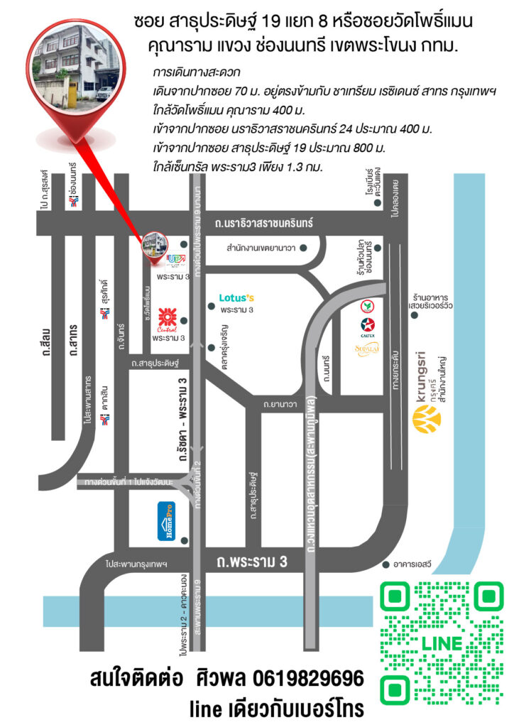 - ที่ตั้งทรัพย์: ซอย สาธุประดิษฐ์ 19 แยก 8 (ซอยวัดโพธิ์แมน) กทม.