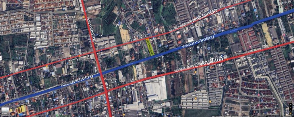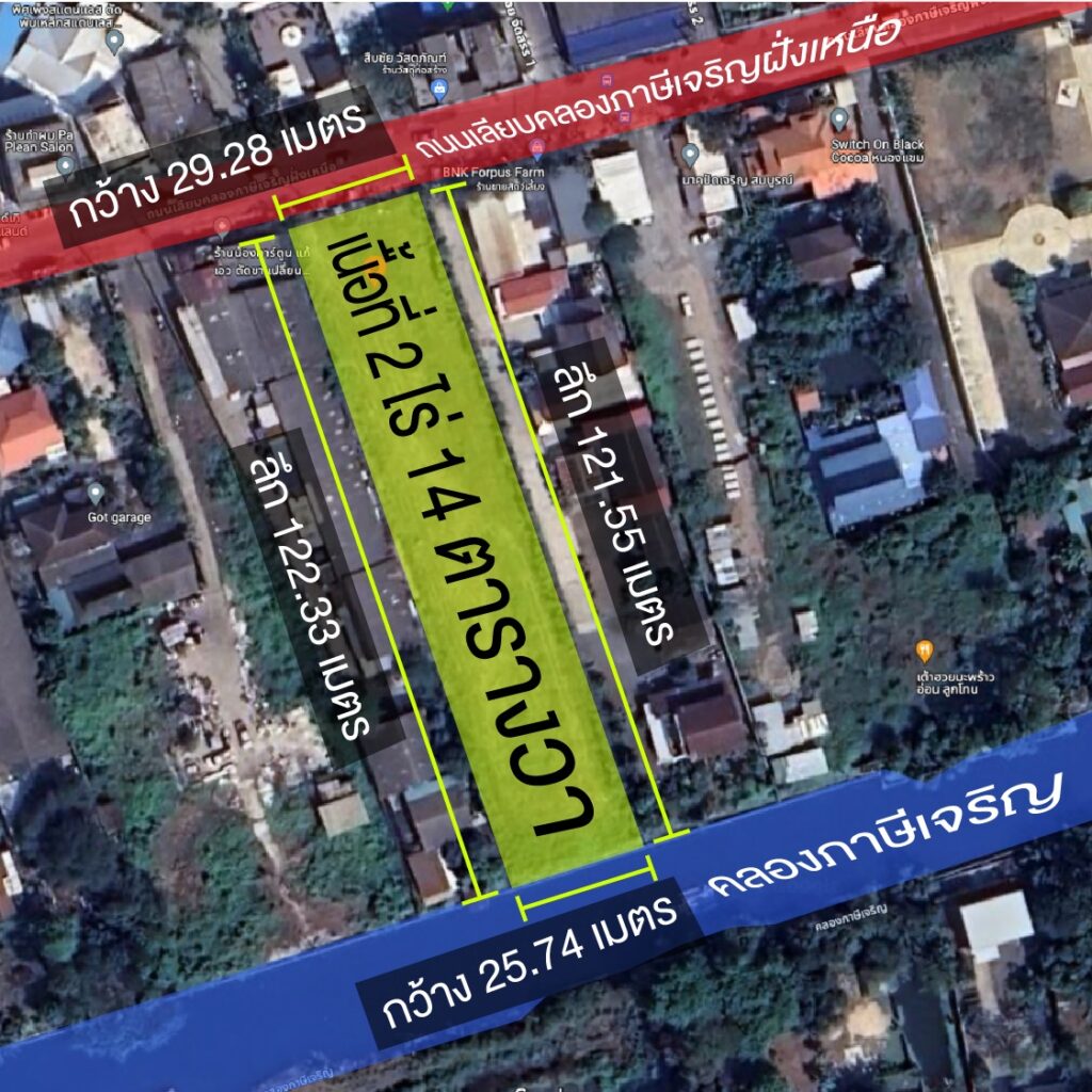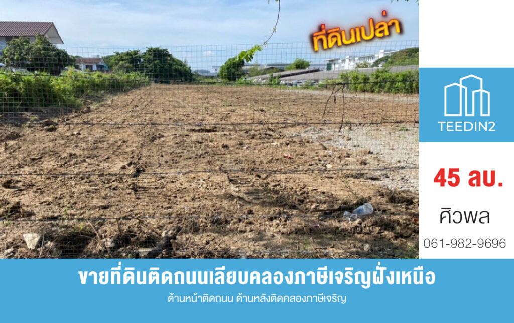 ที่ดินรูปสี่เหลี่ยมผืนผ้า ด้านหน้าติดถนน ด้านหลังติดคลองภาษีเจริญ