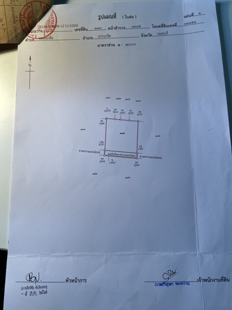 ขายที่ดินสวย ทรงสี่เหลี่ยม ใกล้รถไฟฟ้าเมืองทองธานี 350 เมตร